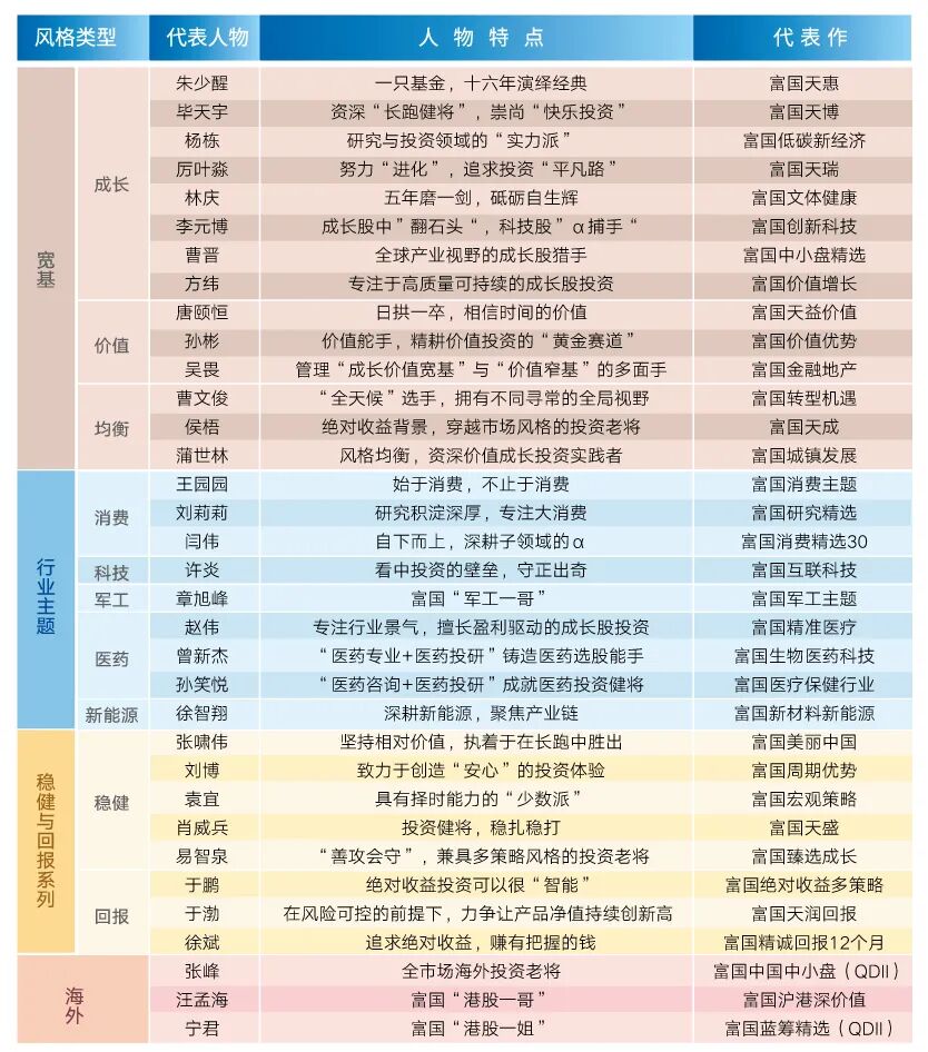 贴心的富二为客官们梳理了分属主动权益各条产品线的几位基金经理及其代表作,带领客官一同走近富二家的“星之队”~