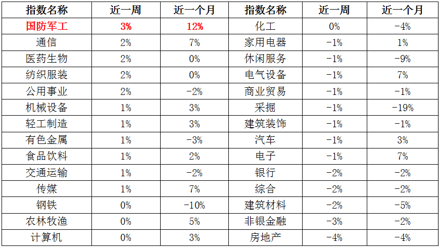 级掌柜盘点了一下,发现最近一段时间军工的赚钱效应非常显著,在28个申万一级行业中,无论近一周、还是近一个月,国防军工指数的收益排名都是NO.1!