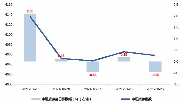 上周表现回顾:上周中证旅游指数在经历前四天的小幅震荡后,在周五大幅上行,累计上涨1.46%,相较沪深300指数跑赢2.49%。