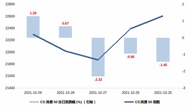 上周表现回顾:上周CS消费50指数在连续三天大跌后连续回升,累计下跌2.79%,相较沪深300指数跑输1.76%。