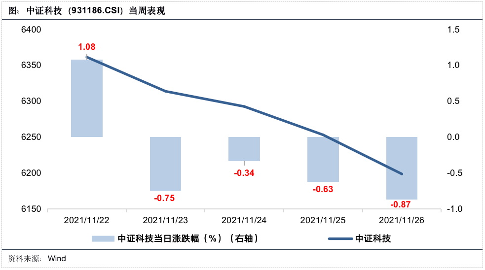 上周表现回顾:上周中证科技指数总体下行,全周涨跌幅为-2.56%。
