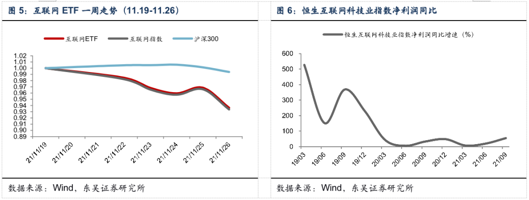 上周表现回顾:上周中证港股通互联网指数的收益率-6.6%,大幅跑输沪深300的-0.6%;港股通互联网指数整体行情波动高于沪深300。港股通互联网指数年初至今的收益率为-30.3%,大幅跑输沪深300的-6.7%。