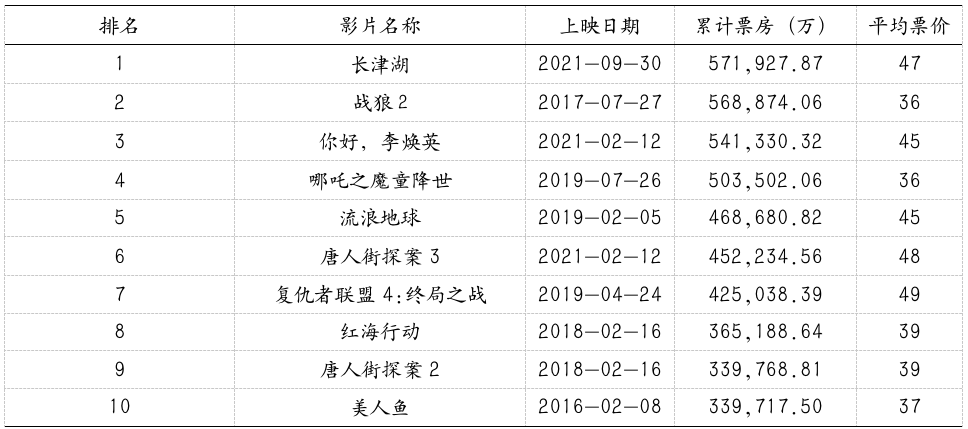 市场需求方面,近年来流量明星充斥影视市场,出现了许多粗制滥造的电视和电影,观众对于这类作品的忍耐度降低,对国产优质影视作品需求攀升。中国票房前十的电影题材各异,表明无论是什么题材,只要电影制作精良、情节引人入胜、善于引起观众共鸣都能够吸引观众。此外,票房前十的电影中有九部为国产电影,有三部在2021年上映,说明国产电影的质量在不断提高,未来国产电影持续大卖的概率提升。