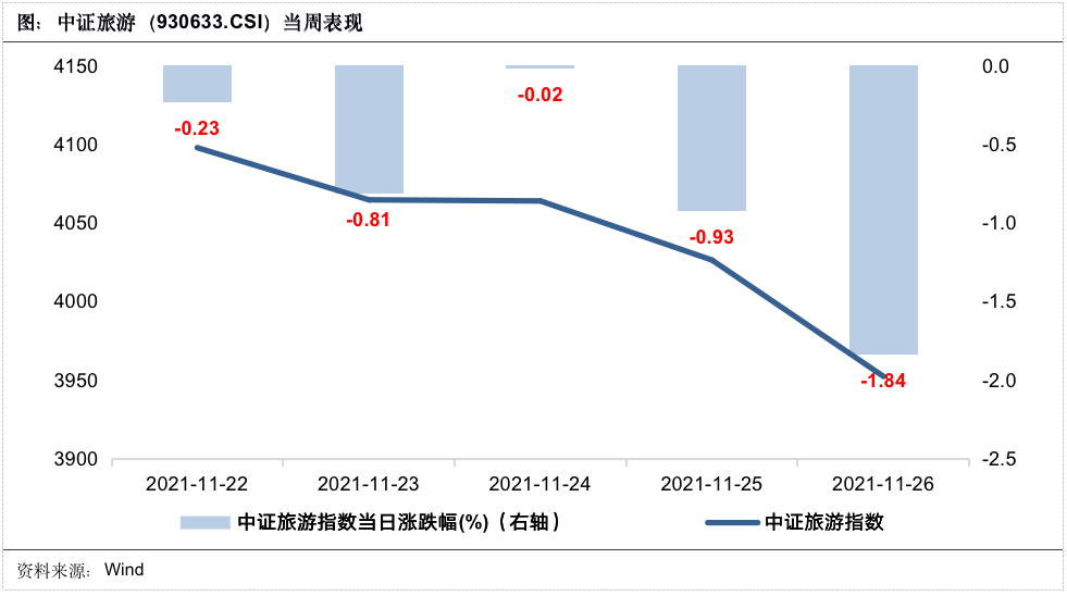 上周表现回顾:上周中证旅游指数连续下行,全周累计下跌3.78%,相较沪深300指数跑输3.17%。