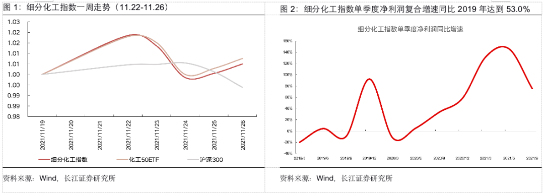 三季报情况:受政策影响,化工行业公司业绩回落幅度明显。细分化工成分股所有公司均披露了三季报;细分化工整体的三季报净利润增速到达75.4%,较2019年三季报净利润的复合增速达到53.0%,行业整体增速仍相对较快。