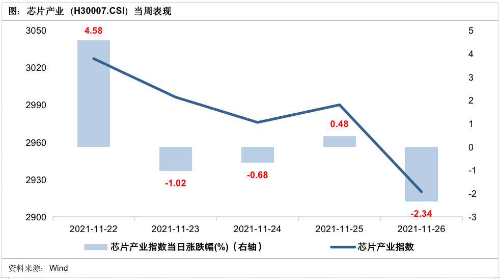 上周表现回顾:上周芯片产业指数高开后震荡下行,累计上涨0.88%,相较沪深300跑赢1.49%。
