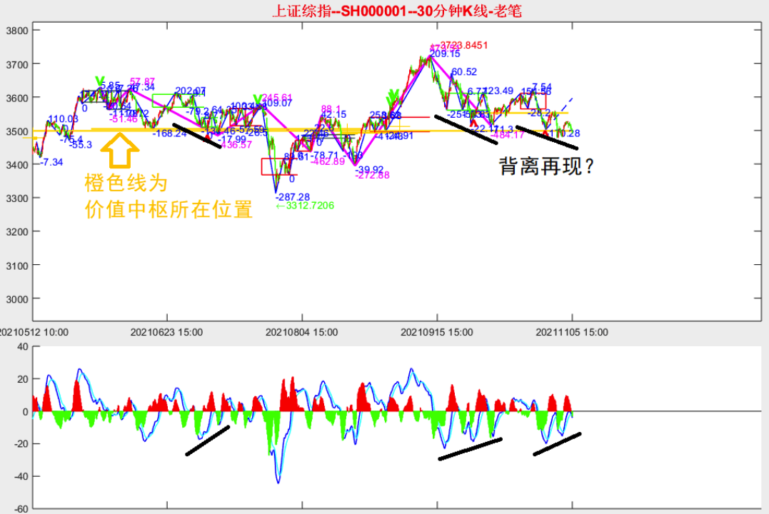 ➤ 从缠论的视角看,短期大盘再次回落到前期低点附近,而且有望再次出现30分钟级别的二重底背离。类似的底背离情境在今年曾经出现过两次,随后的走势结果表明,对应的走势至少有望企稳反弹。