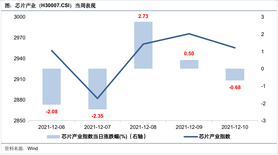 上周表现回顾:上周芯片产业指数周一周二大幅下跌后,周三大幅上涨,周四周五小幅波动,累计下跌1.95%,相较沪深300指数跑输5.09%。