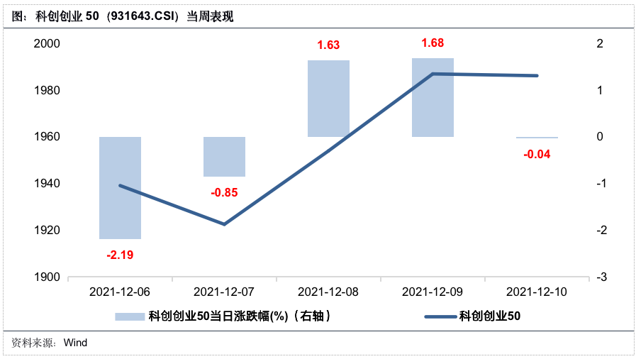 上周表现回顾:上周科创创业50指数震荡上行,全周累计上涨0.17%,相较沪深300指数跑输2.97%。