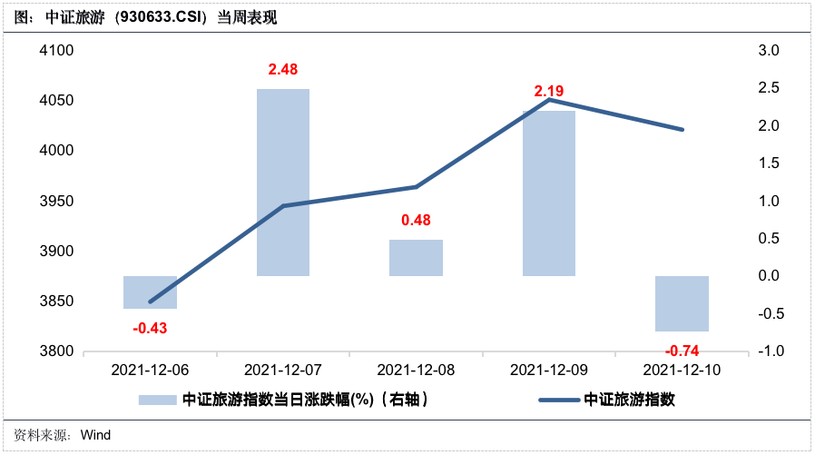 上周表现回顾:上周中证旅游指数除周三外均现涨势,累计上涨4.00%,相较沪深300指数跑赢0.86%。