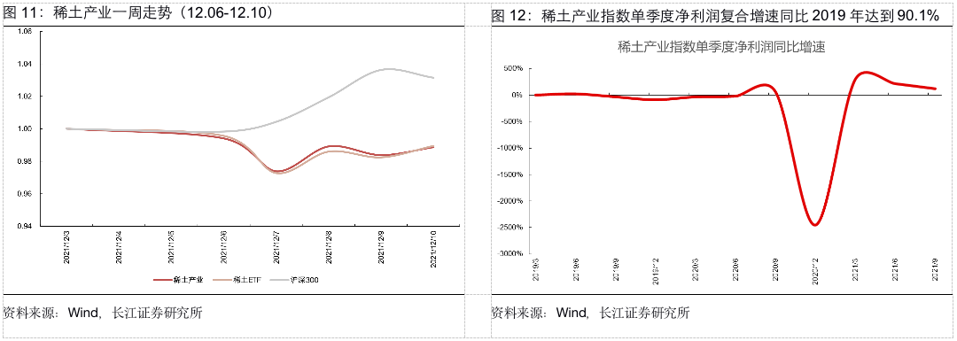两周表现回顾:上周稀土产业指数的收益率为-1.13%,不及沪深300的3.14%;稀土产业指数行情波动很大。稀土产业指数年初至今的收益率为80.34%,大幅跑赢沪深300的-3.00%。