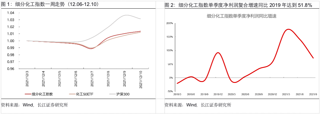 两周表现回顾:上周细分化工指数的收益率为1.36%,跑赢沪深300的3.14%;板块整体行情波动较小;细分化工指数年初至今的收益率为19.69%,跑赢沪深300的-3.00%。