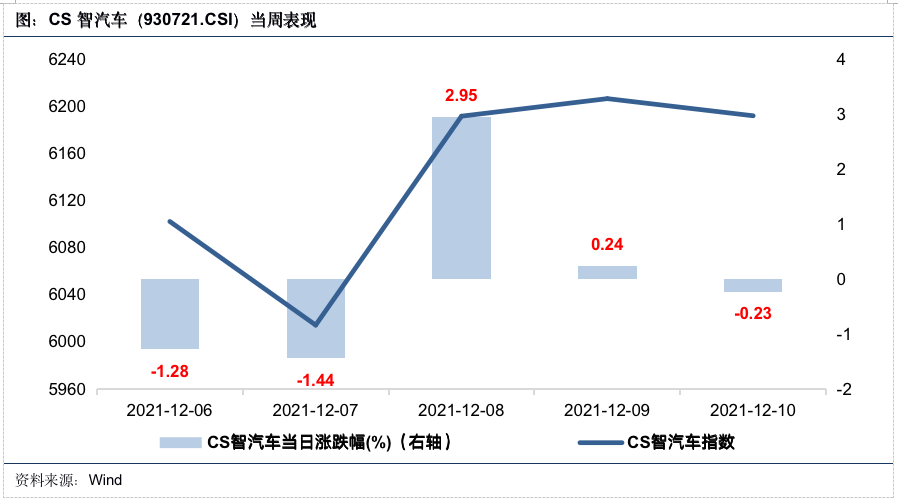上周,新能源车11月销量公布,中汽协数据显示11月新能源汽车产销均破45万辆,同比增长121%,环比增长17%。乘联会数据显示国内11月乘用车批发42.9万,同比增长132%,环比增长18%,渗透率达19.9%,零售37.8万,同比增长122%,环比增长20%,渗透率20.8%。另外,据券商研究员调研显示,2021年12月行业排产仍持续向上,上游锂、中游隔膜/铜箔/石墨化等持续偏紧,电池涨价市场预期强烈,盈利水平即将触底回升。(以上数据来源:东吴证券研究所)随着新能源汽车渗透率的提升,大家也可以逐步关注其在智能化方面的加速渗透带来的投资机会。