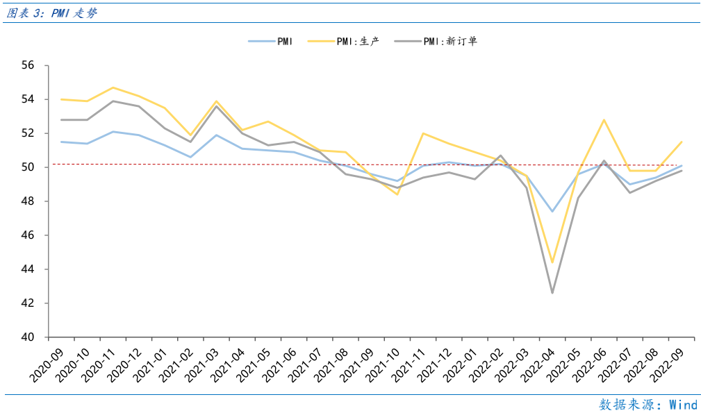 长假不确定性消除,叠加松地产、PMI重回扩张,经济企稳或推升资金买入意愿,节后市场反弹在望。9月PMI自6月后重回扩张区间,指向经济经历7、8月疫情、限电等扰动后逐步“重拾”复苏,或推动市场的反弹行情。但PMI重回扩张,以生产端推动为主,需求仍弱,需关注10月经济能否持续复苏。9月PMI为50.1,重回扩张,其中以PMI:生产51.5推动为主,与需求相关的PMI:新订单仅为49.8。