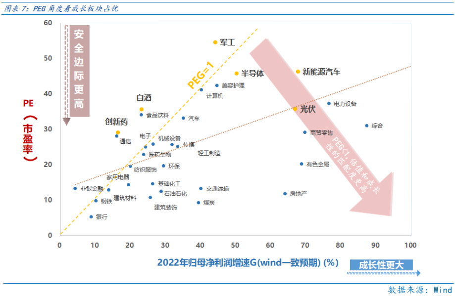 一方面要着眼长期,关注业绩成长性强、基本面景气度的成长板块机遇。其次在市场情绪较 差时,配置高通胀、疫后复苏板块以降低波动。