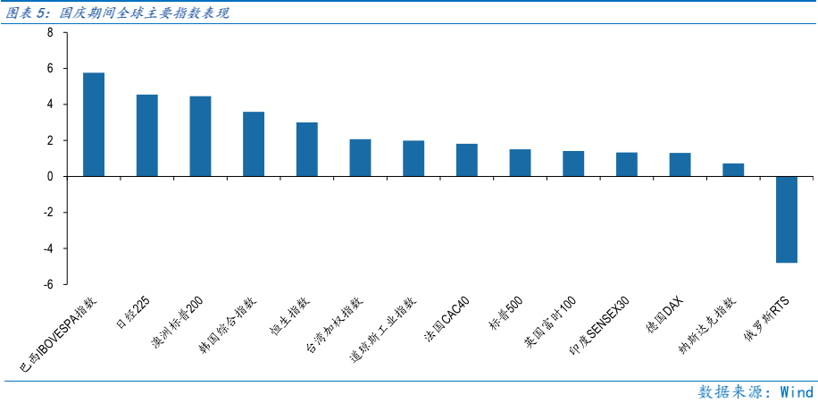 当前市场仍在底部区域,但对市场可更为乐观。首先,无论从市场估值、风险偏好、交投情绪等指标看,市场都已至底部区域,底部区域的市场对利好的反应更为积极;其次,长假不确定性消除叠加地产、PMI等释放经济企稳信号,资金买入的意愿更足;再次,国庆长假期间海外市场大多收涨,人民币汇率有所反弹,对A股有乐观传导。