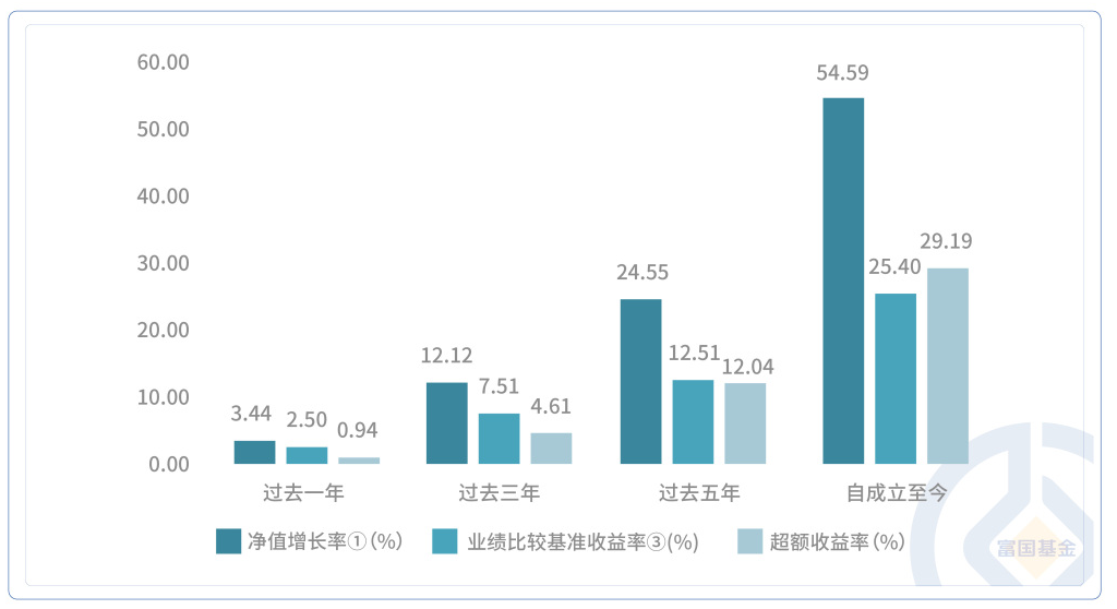 富国强回报A成立于2013年1月29日,自2017年至2021年完整会计年度及2022年上半年的净值增长率及其业绩比较基准(同期中国人民银行公布的两年期定期存款基准利率(税后)+1%)收益率分别为1.51%(3.41%)、9.66%(3.14%)、8.06%(3.14%)、3.95%(3.15%)、5.91%(3.14%)、2.05%(1.56%)。以上富国强回报数据描述对象均为富国强回报A类。