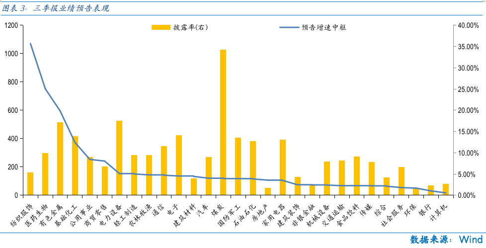 三季报业绩预告预喜率为92.57%,对市场形成极强正面推动,但下周为三季报密集披露期,要关注后半周的“业绩雷”。目前有471家上市公司披露了业绩预告,其中436家预喜,预喜率(预增、扭亏、续增、略增为预喜)超90%,且部分龙头公司超预期的业绩预告是10月上旬反弹行情的关键。下周为三季报密集披露期,一方面要“聚焦业绩”寻机会,另一方面要注意财报披露末期的“业绩雷”。