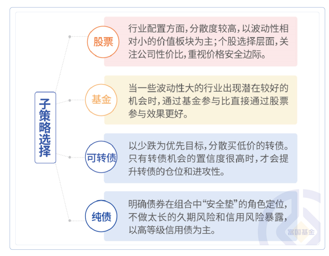 比如即将发行的俞晓斌的新产品——富国恒享回报12个月持有期基金(A类:016645;C类:016646),以债券仓位为主,对股票等权益类资产及可转债等资产的合计投资比例为10%-30%,属于一只纯正的“固收+”基金。在该基金各类资产的子策略上,俞晓斌都将选择更加稳健的做法,力争在每类资产上都兼顾风险控制和获取收益。