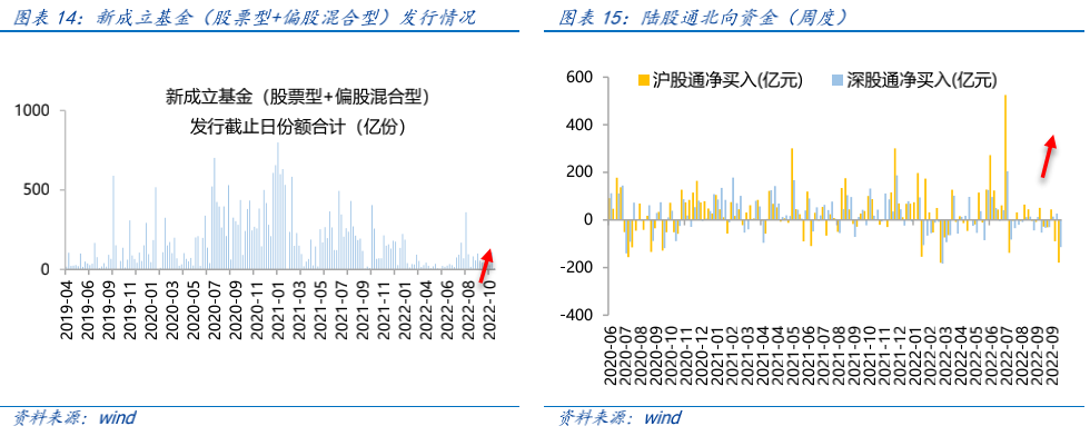 积极的是美股连续两周反弹,显示紧缩预期抬升至顶部区域后,市场对紧缩的压力逐步免疫,反而更关注美股大幅下跌后的机遇。若未来海外紧缩预期不再抬升,北上资金流出压力会随之减弱,则有助于A股在底部区域企稳甚至反弹。