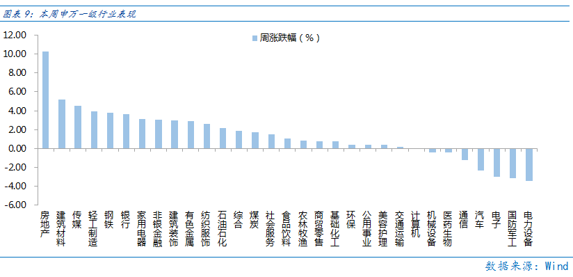 市场始终聚焦边际变化,本周三交易商协会发文落实央行“第二支箭”,市场对地产复苏的预期快速改善。2018年,为化解民营企业的融资困难,央行会同有关部门,研究从信贷、债券、股权三个融资主渠道,采取“三支箭”的政策组合,支持民营企业拓宽融资途径。本周三,交易商协会发文推进并扩大民营企业债券融资支持工具,支持包括房地产企业在内的民营企业发债融资,即央行的“第二支箭”落实,且部分企业债券迅速发行,之后市场对地产复苏预期大幅改善。在此之前有部分城市放松限购、降低房贷利率、9.30新政的税收优惠等政策支持地产,但以往政策都聚焦居民购房端,此次“第二支箭”聚焦地产企业融资端是近期首次,因此对地产行业预期提振极大。