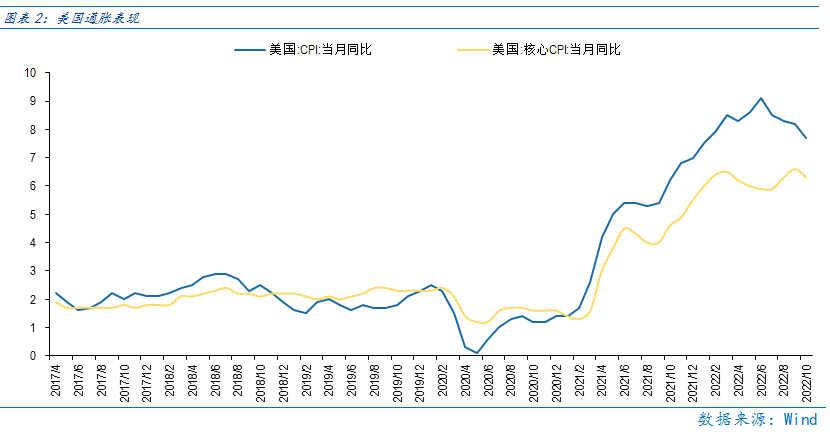 今年以来全球股市均受到美联储加息的压制,但当加息预期已至顶部区域时,市场更关注边际改善的信号。通胀回落是市场共识,关键是斜率。美国10月通胀超预期回落即对市场构成巨大推动,一方面确实通胀低于预期是利好,另一方面也要关注全球对通胀和加息的悲观情绪已在顶部,因此单次的低于预期才能触发纳指单日超7%的上涨,反映的是市场在底部区域,人心思涨,对利好更为敏感。