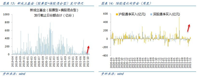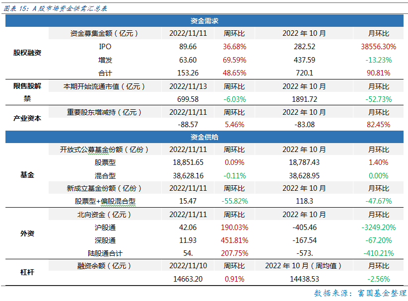 资金供给方面,本周基金发行减少,北向资金净增加。本周北向资金净流出42.06亿元,较上周增加190.03% ,其中沪股通净流入42.06亿元,深股通净流入11.93亿元。本周新成立股票型及偏股混合型基金份额合计15.47亿份,环比减少15.47% ,显示基金发行遇冷。本周开放式公募基金份额较稳定,其中股票型份额几乎保持不变为18851.65亿份,混合型份额几乎保持不变为38628.16亿份。