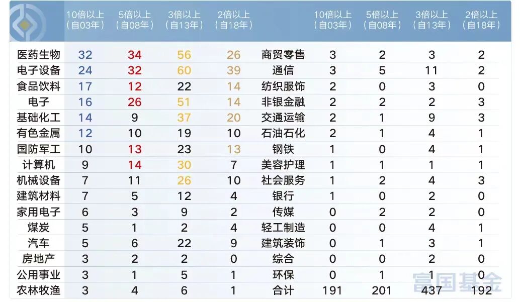 运动户外、羽绒服、珠宝首饰等优质赛道及龙头品牌的出色表现,表明消费者对于户外生活方式和功能性产品需求的增长及对国产品牌认可度继续提升。 消费行业向来是“10倍股”的发源地 ,也是常说的“长坡厚雪”的赛道,也正因为消费的成长性所以通常优质龙头公司会被给予高估值。 包括代表消费升级的食品饮料、呵护健康的医药生物、满足娱乐的TMT等等。