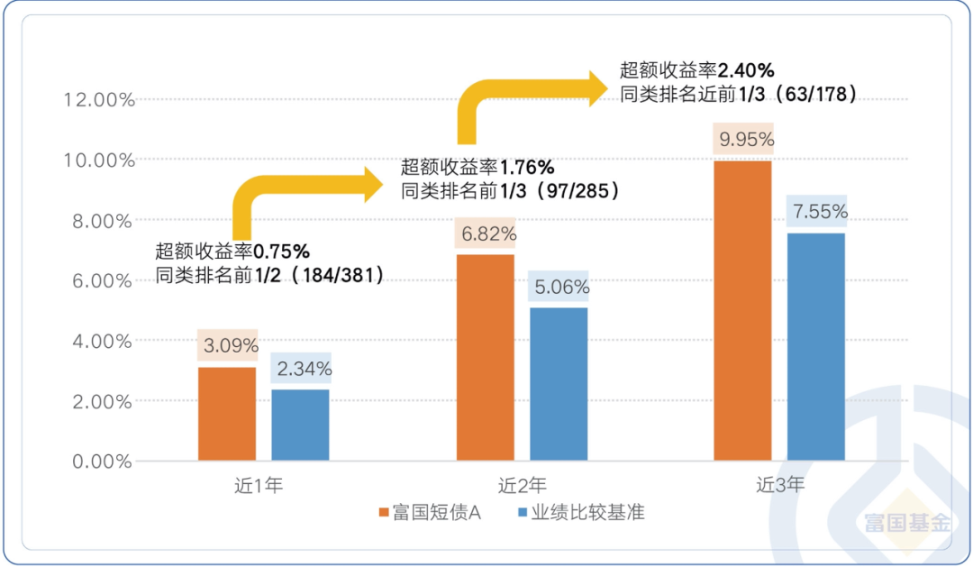 举个例子——由张波管理的富国短债采用稳健的投资策略,注重在关键时点布局购债,并适时、适度地利用杠杆,以提升组合的投资回报。