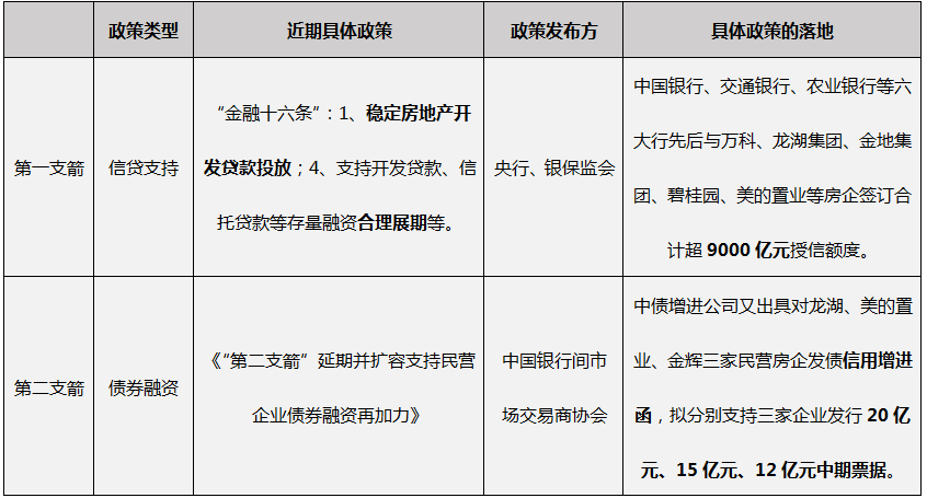 三支箭所指乃是地产企业的三种融资方式:信贷、债券与股权融资三种。近期地产行业政策频出,三箭均发。