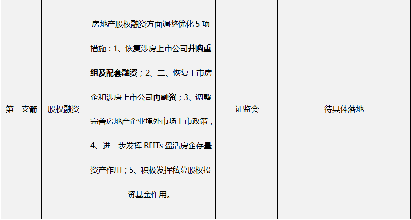 本次的三支箭,第一支箭信贷投放的方式落地最快,效果也最直接;而第三支箭虽然需要时间推动落地,但从政策导向却最为明显,尤其是在第一条“恢复涉房上市公司并购重组及配套融资”上,在2010年就有新“国十条”的通知“已暂缓受理房地产开发企业重组申请”,并在2016年得到监管重申,时隔12年,可谓房企再融资的破冰,也可见本次政策的力度之大。