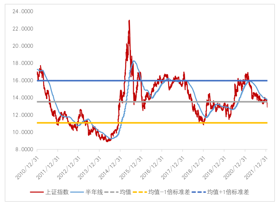 ◆ 虽然没有百分之百安全的“估值锚”,但是寻找一个安全边际比较高的“估值锚”还是有一些方法的。以上证指数为例,找一找“估值锚”。2022年初上证指数的估值在13倍左右,这个估值位于历史均值水平附近。如果市场下跌的话,上证指数能跌到什么位置呢?