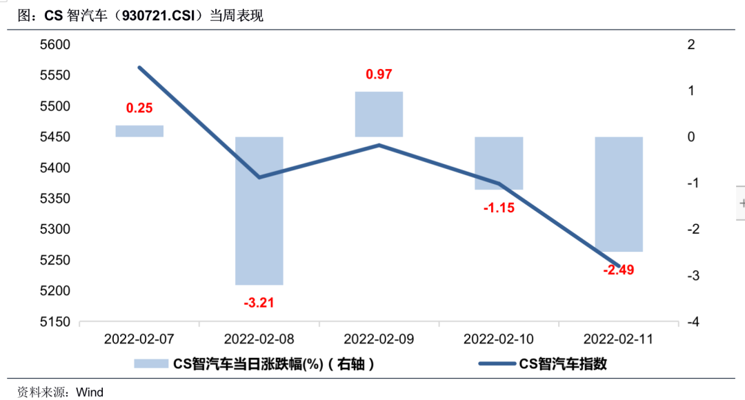 上周CS智汽车指数震荡下跌,全周累计下跌5.63%,相较沪深300指数跑输6.47%。
