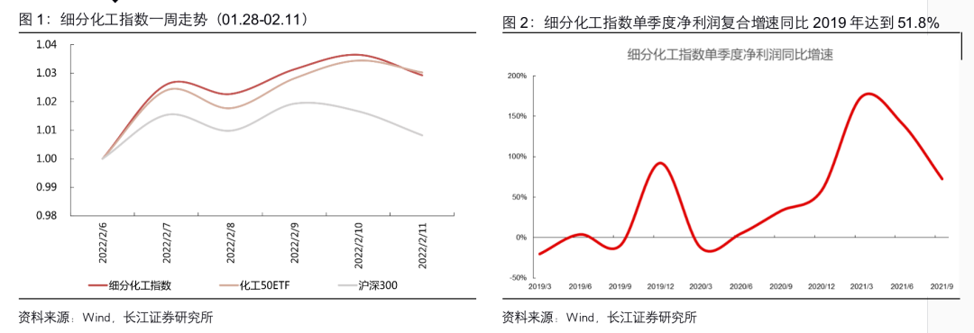 春节后一周细分化工指数的收益率为2.93%,跑赢沪深300的0.82%;板块整体行情波动适中;细分化工指数2022年初至今的收益率为-6.16%,小幅跑输沪深300的-6.86%。