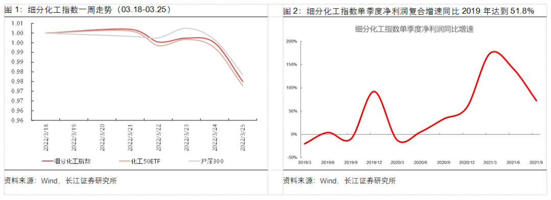上周细分化工指数的收益率为-2.49%,跑输沪深300的-2.14%;板块整体行情波动稍大;细分化工指数2022年初至今的收益率为-14.37%,小幅跑赢沪深300的-15.50%。