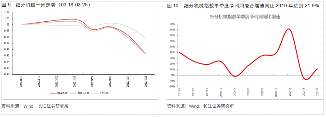 上周细分机械指数的收益率为-4.71%,跑输沪深300的-2.14%;机械指数行情波动较大。细分机械指数2022年年初至今收益率为-18.14%,跑输沪深300的-15.50%。