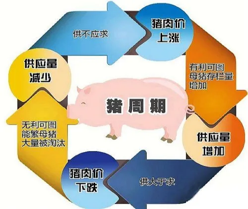 猪产业的周期服从蛛网模型,什么是蛛网模型呢,就是价格与供给关系的在市场作用下动态循环,在这个循环里养殖户总是根据上一期的价格决定下一期的产量,这样就会产生价格上涨——厂商提高供给——价格下降——厂商减少供给——价格上涨这样的循环。