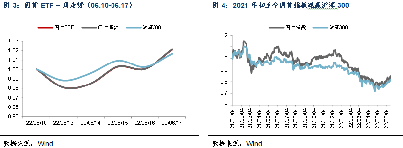 上周表现回顾:上周中证国货指数的收益率2.1%,跑赢沪深300的1.7%;国货指数整体行情波动大于沪深300。国货指数年初至今的收益率为-17.7%,跑输沪深300的-12.8%。