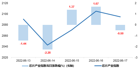 芯片行业走弱,一方面是由于美国通胀数据超乎市场预期和美联储超预期加息,另一方面是因为当前半导体行业存在结构性缺芯、扩产矛盾,又存在下游需求走弱和库存高企的隐忧,预期未来市场趋弱,主要风险还是在于海外需求的变动以及全球金融环境的变化。中国的半导体产业主逻辑还是在于经济安全下的中美产业链的重构,关注以国产替代和自主可控为核心逻辑的相关标的。