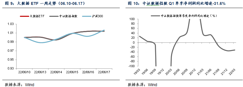 上周表现回顾:上周中证数据指数的收益率1.4%,跑输沪深300的1.7%;中证数据指数整体行情波动小于沪深300。中证数据指数年初至今的收益率为-27.5%,跑输沪深300的-12.8%。