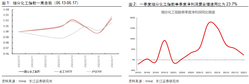 两周表现回顾:上周细分化工指数的收益率为2.38%,跑赢沪深300的1.65%;板块整体行情波动较大;细分化工指数2022年初至今的收益率为-8.27%,跑赢沪深300的-12.78%。