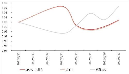 两周表现回顾:上周上海金合约的收益率为0.22%,跑输沪深300的1.65%;上海金合约行情整体波动相对较小。上海金合约2022年年初至今的收益率为6.37%,大幅跑赢沪深300的-12.78%。