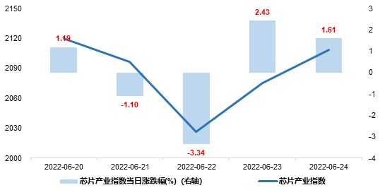 上周芯片产业指数周一小幅上涨,周二开始连续两日下跌,周四周五连续两日上涨。累计上涨0.68%,相较沪深300指数跑输1.31%。