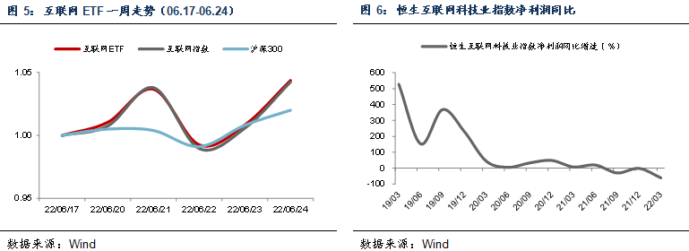 上周表现回顾:上周中证港股通互联网指数的收益率4.2%,跑赢沪深300的2.0%;港股通互联网指数整体行情波动大于沪深300。港股通互联网指数年初至今的收益率为-15.3%,跑输沪深300的-11.0%。