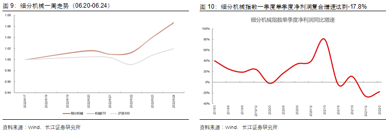 两周表现回顾:上周细分机械指数的收益率为6.68%,跑赢沪深300的1.99%;机械指数行情整体波动较大。细分机械指数2022年年初至今收益率为-5.61%,小幅跑赢沪深300的-11.04%。