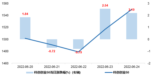 上周科创创业50指数震荡上行,全周累计上涨5.11%,相较沪深300指数跑赢3.12%。