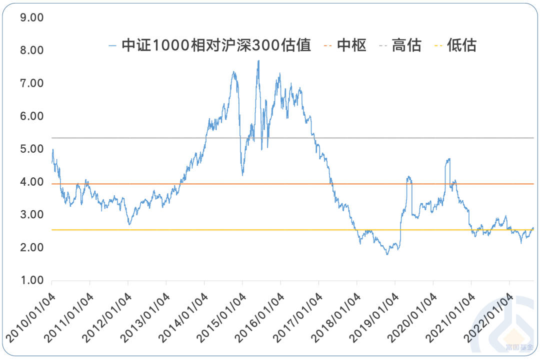 图:中证1000相对沪深300的估值仍旧处于低估区间