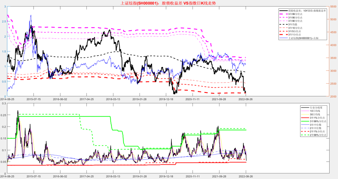 当前的“股债收益差”再次来到了过去3年区间的10%分位点附近,也就是说,当前时点配置A股,比过去3年90%的时间都更有性价比。所以大盘的调整风险应该是相对可控的,值得逢低关注。