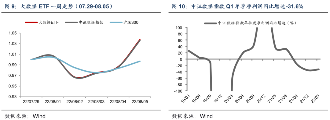 上周中证数据指数的收益率3.6%,跑赢沪深300的-0.3%;中证数据指数整体行情波动大于沪深300。中证数据指数年初至今的收益率为-24.6%,跑输沪深300的-15.9%。