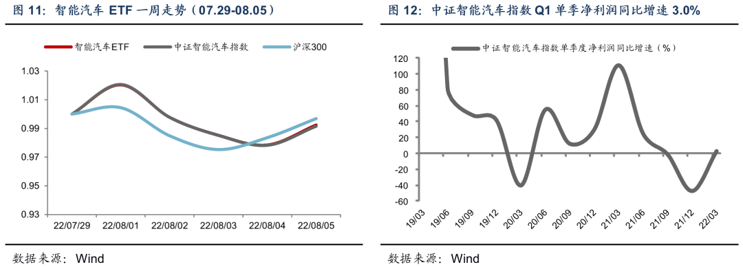 上周中证智能汽车指数的收益率-0.8%,跑输沪深300的-0.3%;中证智能汽车指数整体行情波动大于沪深300。中证智能汽车指数年初至今的收益率为-16.8%,跑输沪深300的-15.9%。